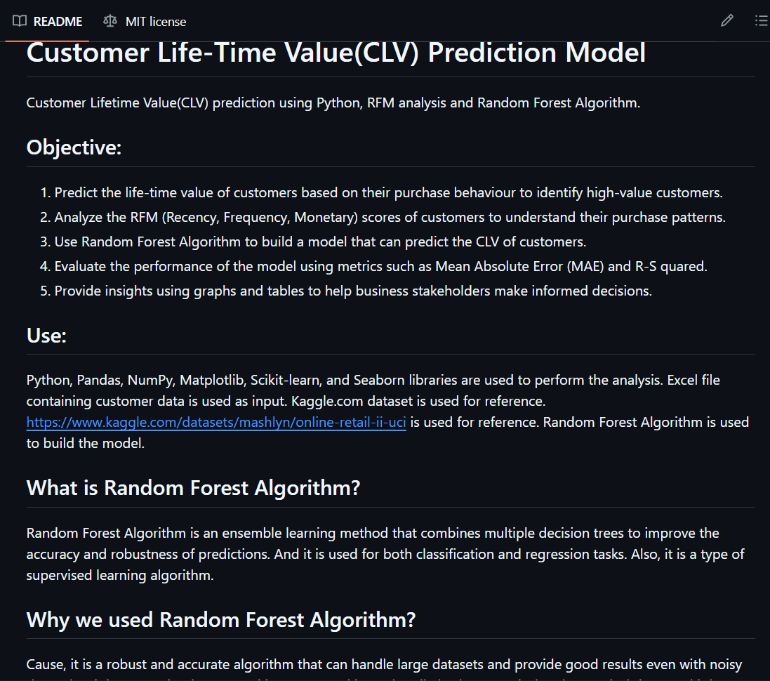 Customer Lifetime Value(CLV) prediction using Python, RFM analysis and Random Forest Algorithm.